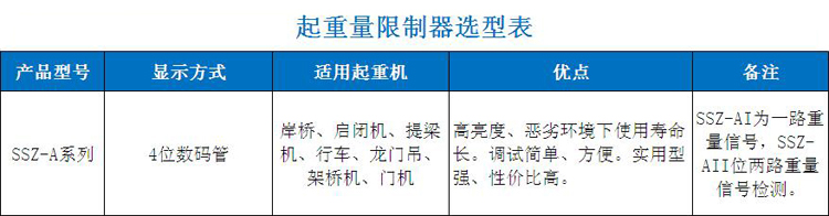 產(chǎn)品詳情 功能介紹 產(chǎn)品優(yōu)勢 產(chǎn)品參數(shù) 包裝清單 產(chǎn)品詳情 該型號起重量限制器為SSZ-A(Ⅰ/Ⅱ)-H型起重量限制器的壁掛式安裝版本,外殼采用高耐腐蝕性防水壓鑄鋁合金。Ⅰ型和Ⅱ型分別適用于一路和兩路信號輸入的起重機(jī)。 功能介紹 產(chǎn)品優(yōu)勢 產(chǎn)品參數(shù) 包裝清單