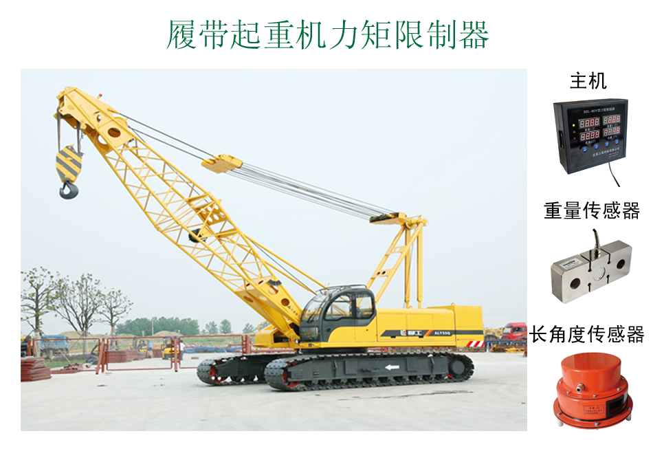 履帶吊力矩限制器主要采用主繩取力或變幅取力。主繩取力傳感器安裝于臂桿頭部,直接測(cè)量載荷;變幅取力傳感器安裝于變幅繩上。通過(guò)測(cè)量變幅拉力計(jì)算起吊載荷。變幅繩采樣方式的算法復(fù)雜,但使用維護(hù)方便,不影響主繩的更換維修。