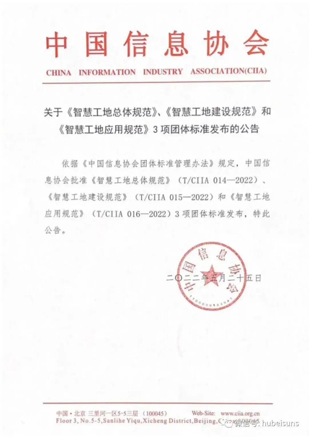 2022年5月25日,由湖北三思科技股份有限公司參與起草的《智慧工地建設(shè)規(guī)范》《智慧工地總體規(guī)范》《智慧工地應(yīng)用規(guī)范》三項(xiàng)團(tuán)體標(biāo)準(zhǔn)經(jīng)中國信息協(xié)會(huì)批準(zhǔn)正式發(fā)布!