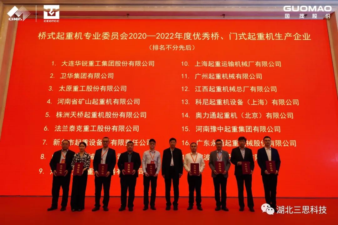 首先對橋式起重機(jī)專業(yè)委員會2020-2022年度優(yōu)秀橋、門式起重機(jī)生產(chǎn)企業(yè)進(jìn)行表彰,共有17家會員單位獲此殊榮,并頒發(fā)獲獎榮譽(yù)證書。