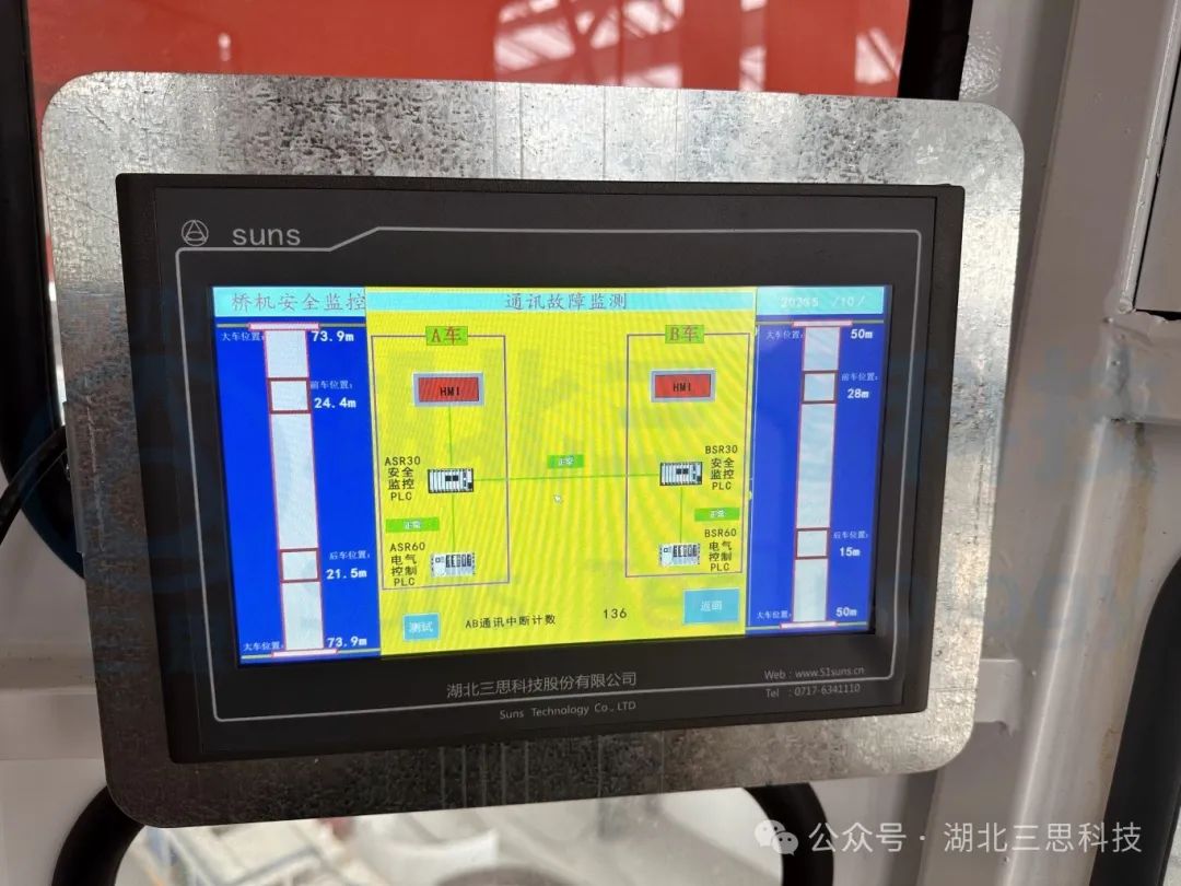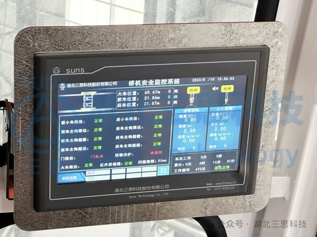 系統(tǒng)實時顯示起重機(jī)的運(yùn)行狀況參數(shù),如:主副參數(shù)、整車參數(shù)、天車參數(shù)、本次工作時間、工作時間、工作次數(shù)、通訊狀況等,可以讓駕駛員全方位掌握橋機(jī)的實時運(yùn)行狀況,提高了操作的安全性。