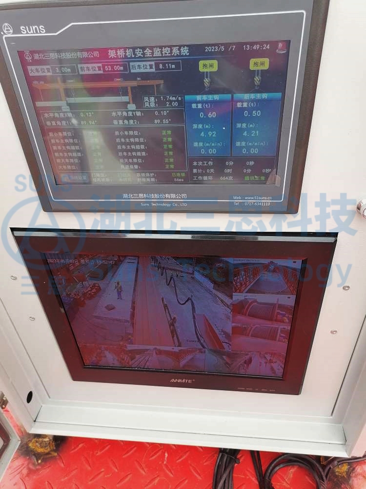 視頻監(jiān)控系統(tǒng)監(jiān)測(cè)架橋機(jī)的過孔狀態(tài)、架梁狀態(tài)、運(yùn)梁車同步狀態(tài),視頻顯示器放置于駕駛室中或者主機(jī)電箱內(nèi),給駕駛員帶來更加寬廣的操作視野,提高了架橋機(jī)操作便捷性。